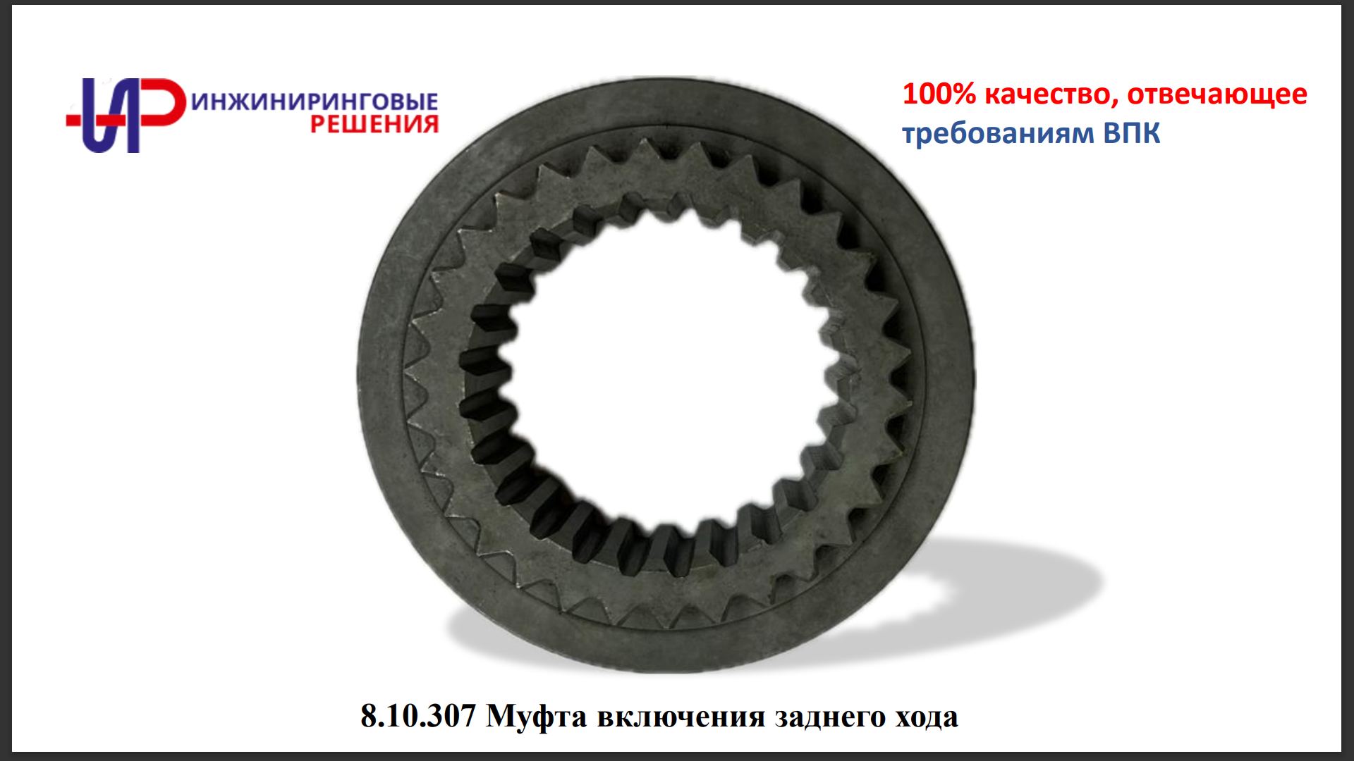 От лица нашей организации выражаем искреннюю благодарность всему коллективу ООО «Инжиниринговые решения» и, отдельно, исполнительному директору Ильшату Ирисовичу за Ваш профессионализм и оперативность в проведении работ по фрезерной обработке. Обработка была проведена в строгом соответствии с техническим заданием и полностью отвечает высоким требованиям. 8.10.307 Муфта включения заднего хода